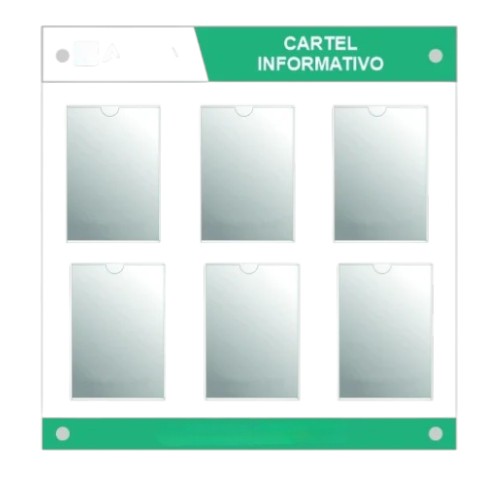Este porta afiche acrílico mural está diseñado para mostrar hasta seis afiches tamaño A4 de forma clara, profesional y organizada. Ideal para oficinas, clínicas, instituciones educativas o comerciales que necesitan exhibir información variada en un solo soporte.