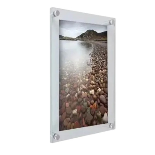 PORTA AFICHE DOBLE ACRÍLICO PARA AFICHE A2 CON TOPES METÁLICOS